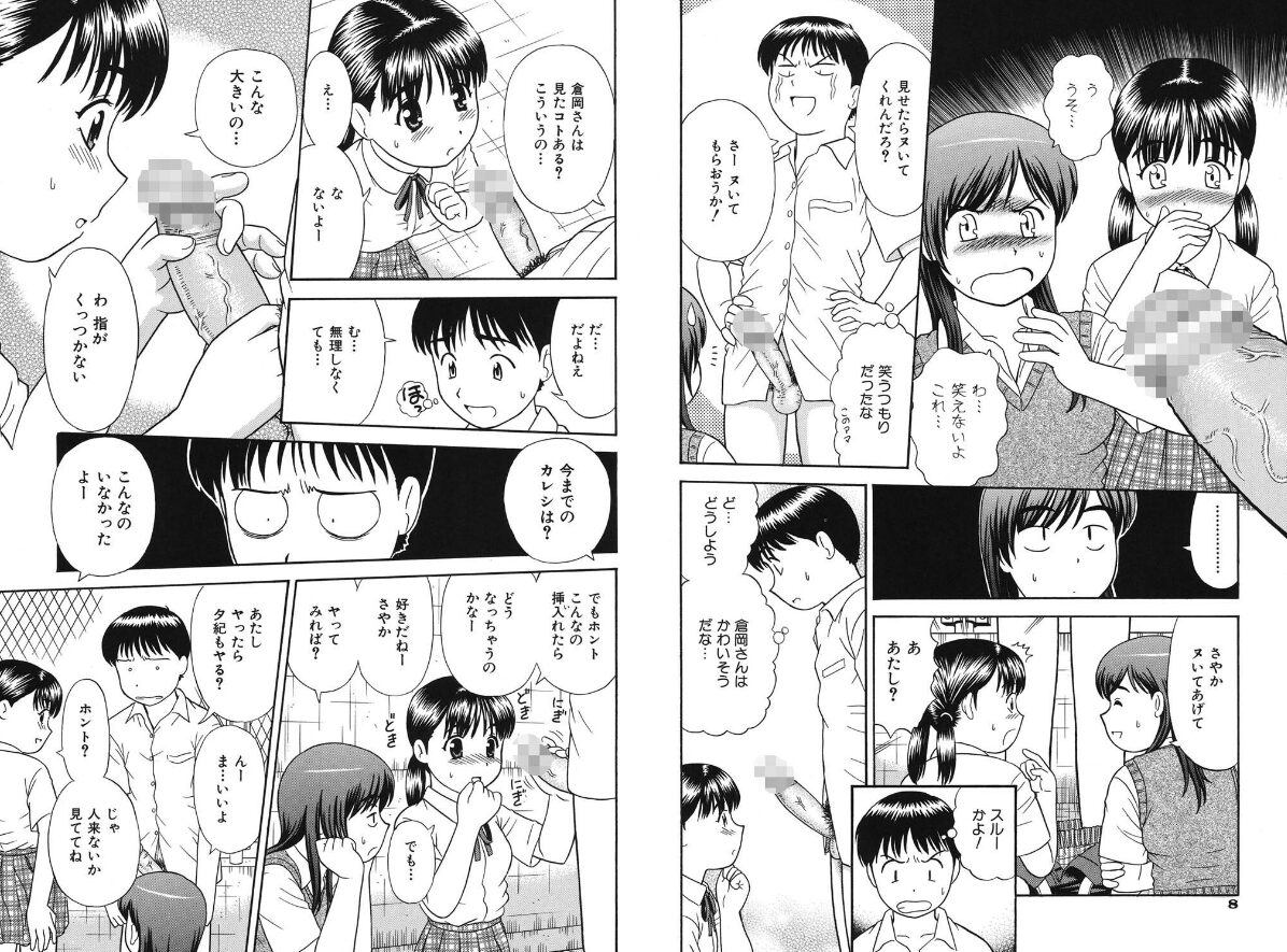 「でっちん」という仇名の男の子に興味をもった同級生の女の子ふたりは、抜いてあげるからと見せてもらうが、その大きさに入れてみたくなり立ちバックで中出しまでしてしまう。もう一人の子もいつしか対抗心を燃やし3Pに突入!!