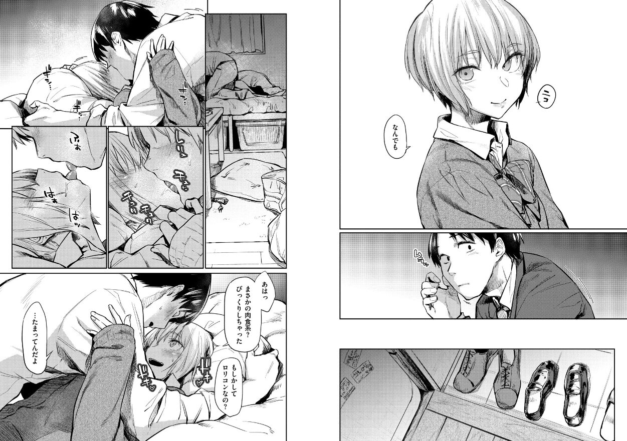 巻頭の「黒の扉」は、お兄ちゃんでオナニーしていたところを兄の友達に見つかってしまい脅されてエッチをされる話です。