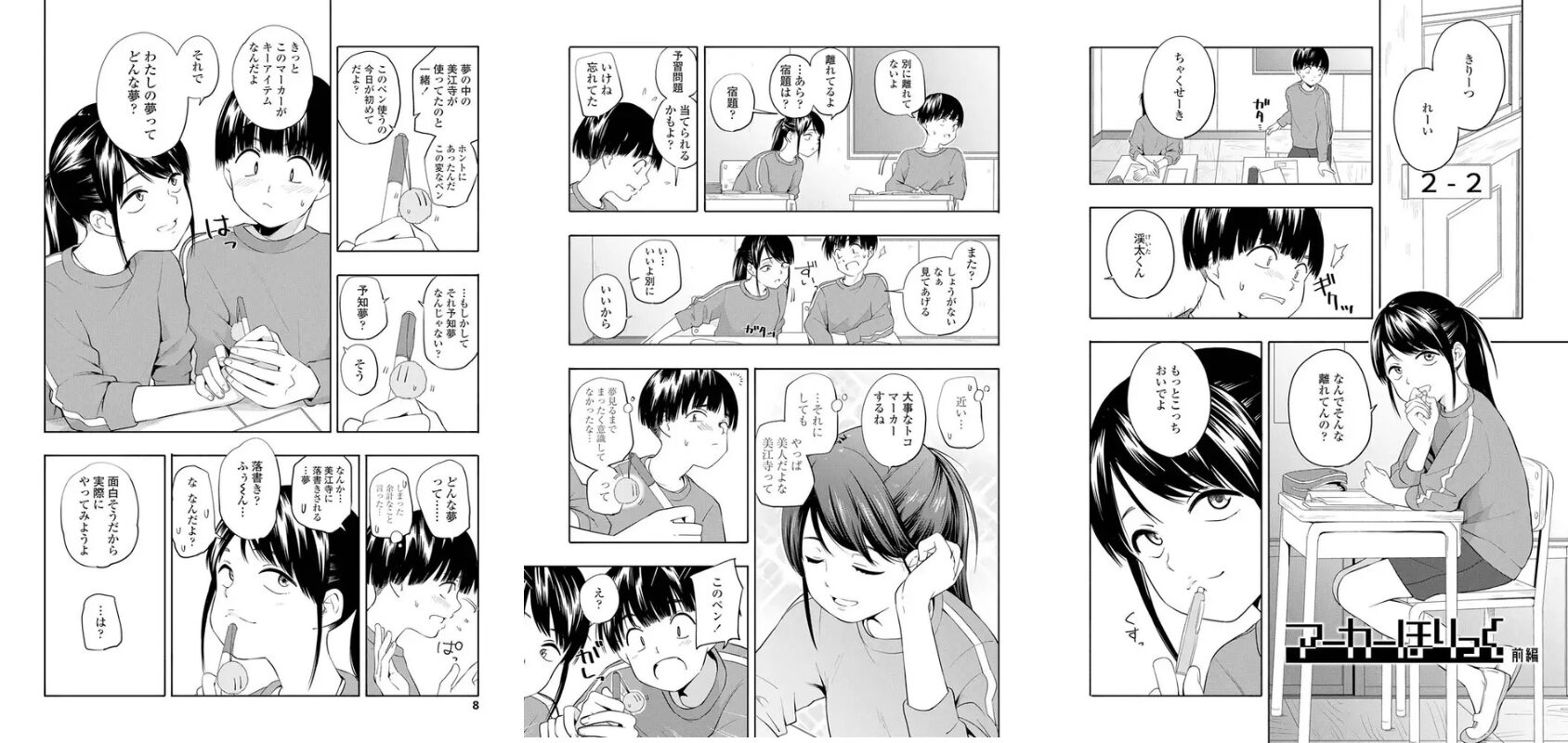 マーカーほりっく:夢に同級生の美江寺が出てきてエッチな夢だったということがばれて、実際にすることになる話です。すでにエッチの経験がある美江寺にリードされますが、素直な行為を伝えてきゅんときてどんどん気持ちよくなっていく感じがいいです。